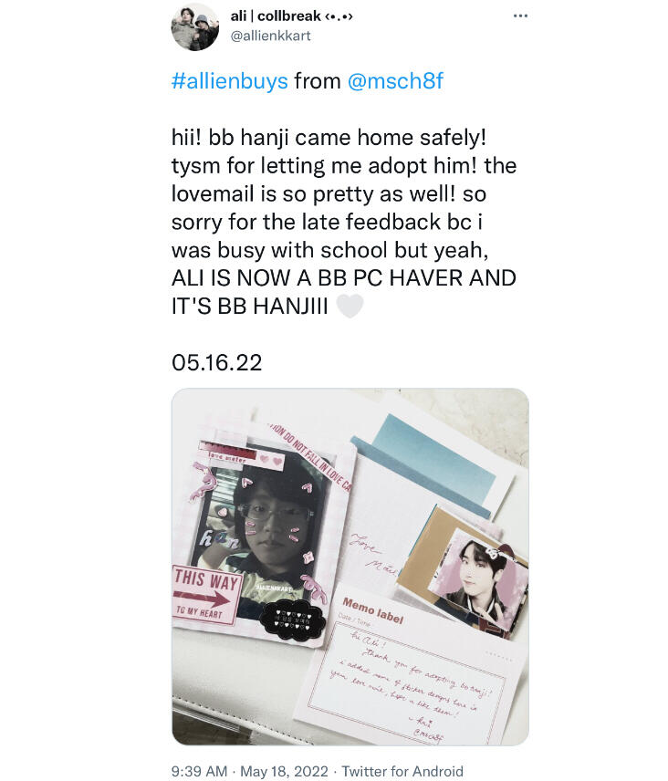 some photos have links to the buyers respective twt accounts.